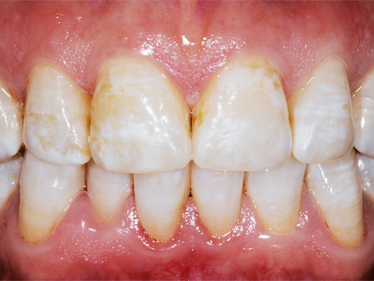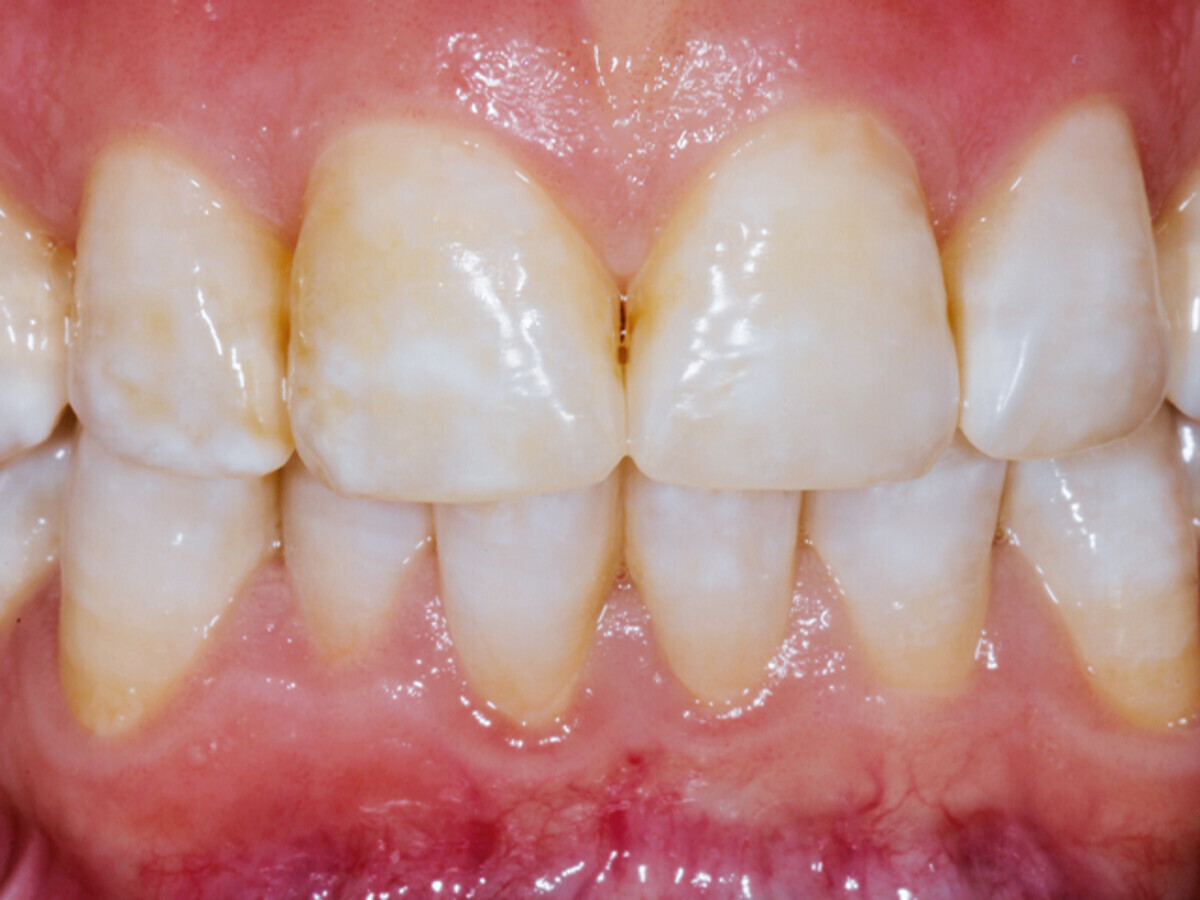 V dále uvedeném klinickém případě se k nám dostavila 37letá pacientka kvůli zlepšení vzhledu úsměvu. Po důkladné anamnéze a určení správné diagnózy, konkrétně fluorózy zubů, byla pacientce nabídnuta remineralizační léčba založená na účinku F-ACP pěny Biosmalto Mousse Cavities, Abrasion & Erosion nanášené pomocí individuálních tepelně formovaných nosičů a používané 2× denně vždy po dobu 20 minut. Pacientce bylo také doporučeno, aby hodinu po použití pěny ústa nevyplachovala, nepila, nejedla ani nekouřila. Požádali jsme pacientku, aby používala nosiče důsledně, každých 30 dní se dostavovala na kontroly a léčbu doplnila používáním remineralizační zubní pasty Biosmalto Cavities, Abrasion & Erosion a měkkého zubního kartáčku Curasept Soft 012 za modifikované Bassovy techniky čištění zubů.
