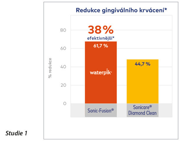Studie 1: Waterpik Sonic-Fusion – výrazně účinnější než Sonicare DiamondClean v odstranění zubního plaku a zlepšení zdraví dásní
