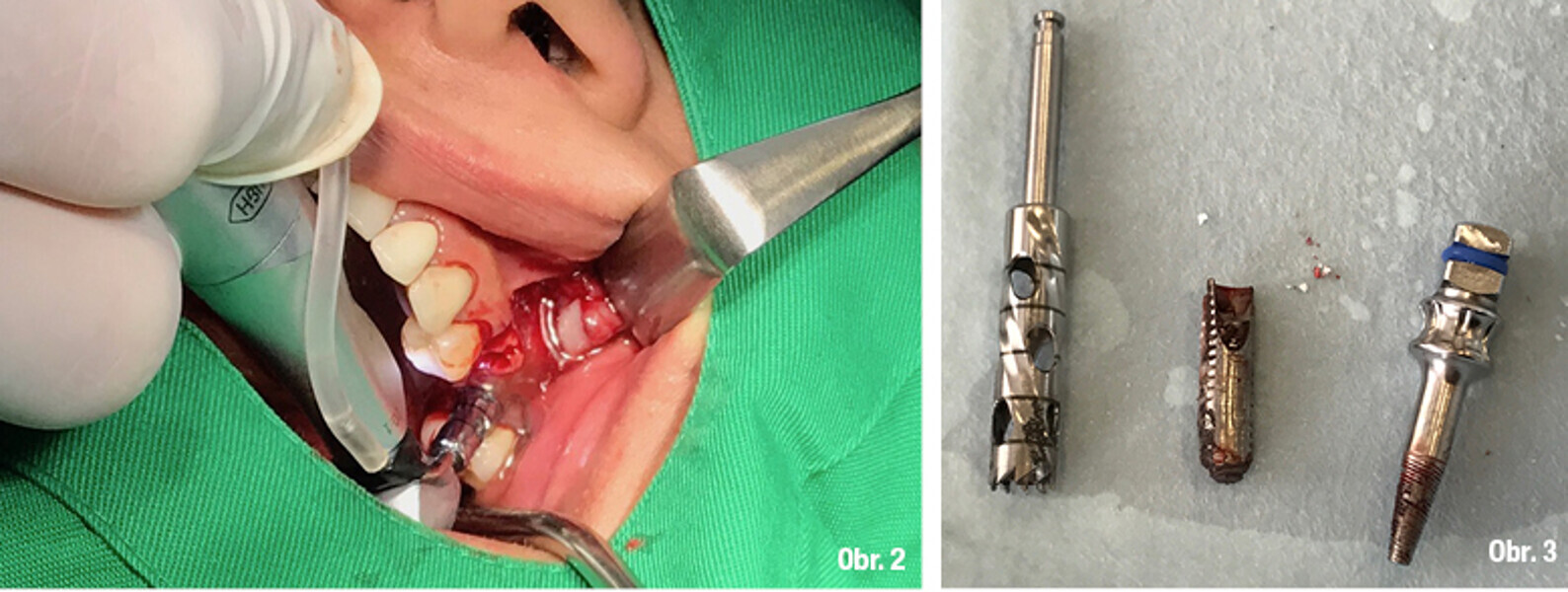 Explantace a okamžitá implantace kombinací reverzního krouticího momentu a trepanační frézy
