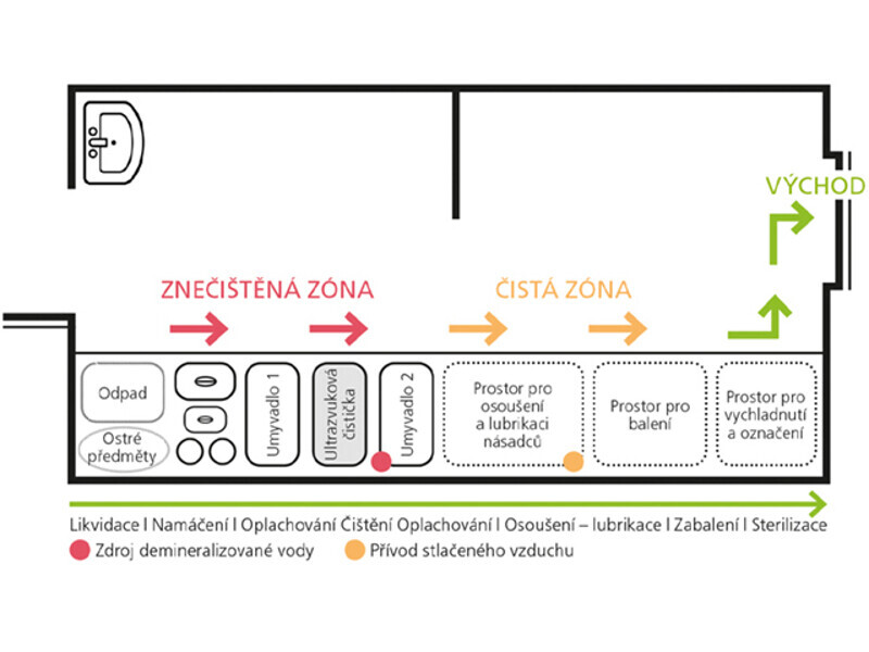 Základní principy při projektování prostoru pro čištění a sterilizaci